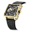The T2 features a Movement Cal.T1 TOURBILLON with a frequency of 28800, a 39x39mm case size, and a case thickness of 11.2mm. Made with 316L stainless steel, the middle case contains a Quartz glass and a Sapphire crystal windshield. The back cover is also made with Sapphire crystal, allowing for a see-through view. With water resistance up to 3ATM, this timepiece weighs approximately 64g and comes with a 24-month warranty. The alligator round spot hand-stitched belt is 25mm wide and has a tailpiece width of 20mm. The buckle is a pin buckle and features luminova for easy visibility.